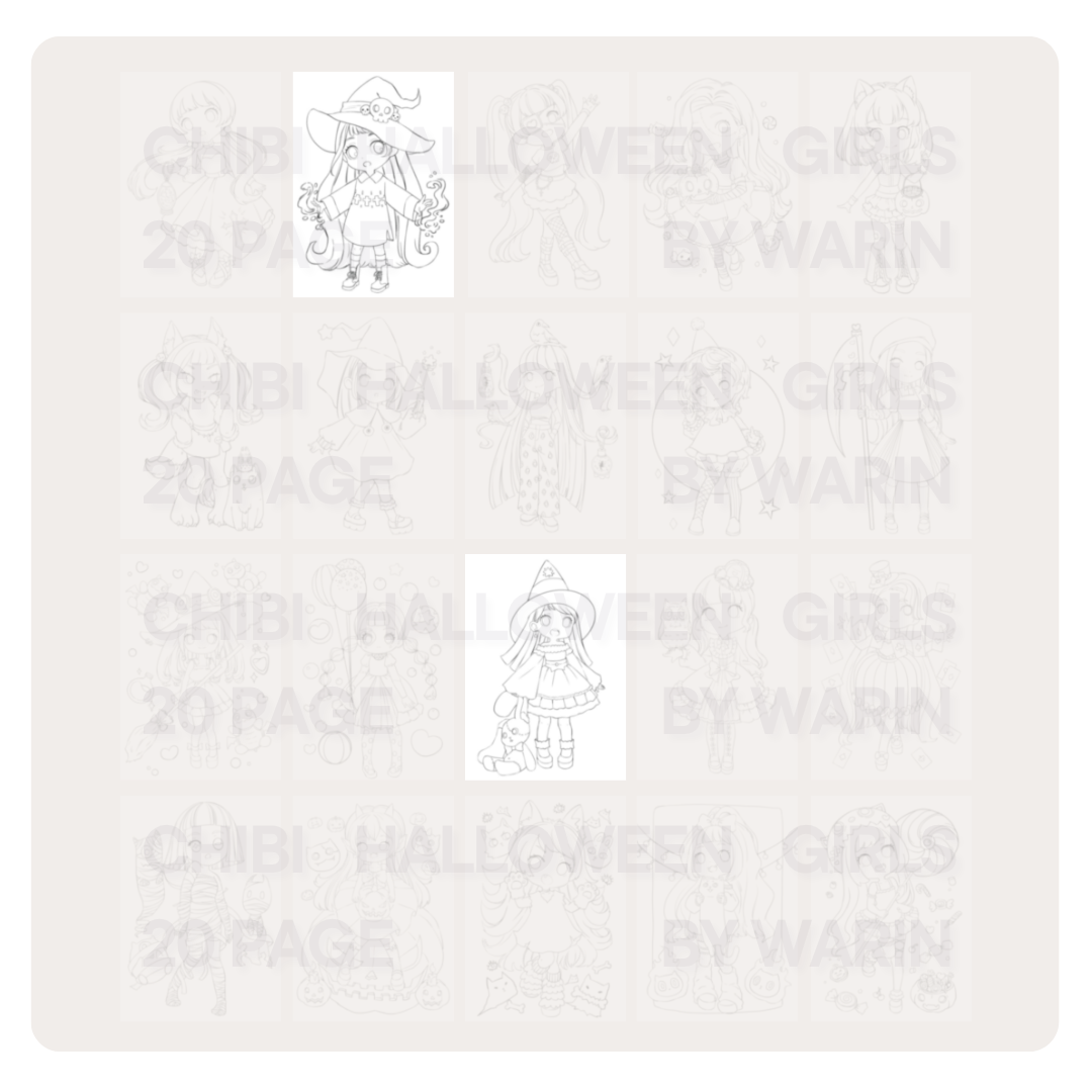 "Get Coloring page Chibi Halloween Girls 20 page"